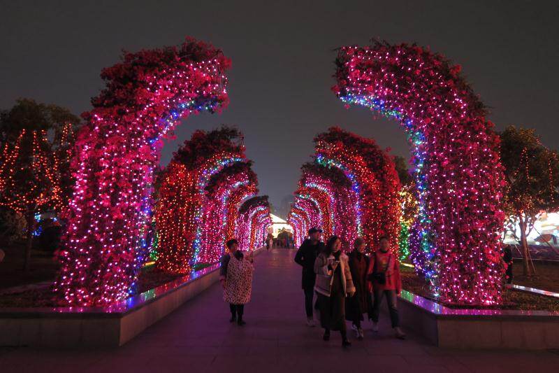 据介绍,青秀山夜游区域总体占地面积约500亩,整体游览线路长达2.9公里,结合传统民俗、魅力广西、绿色生态等主题元素,展出祝福主题灯组40多组、魅力广西主题灯组10多组。灯组在构思和制作工艺上均有创新,通过科技创意助力,充分展示有形、有色、有声、有光、有动态的灯组效果。同时,为了让游客感受到浪漫、梦幻、美好的夜游氛围,青秀山还打造了一个个最佳拍摄打卡网红场景,让游客体验白天观景、夜间观灯的独特景观,感受“人在灯中游”的意境。