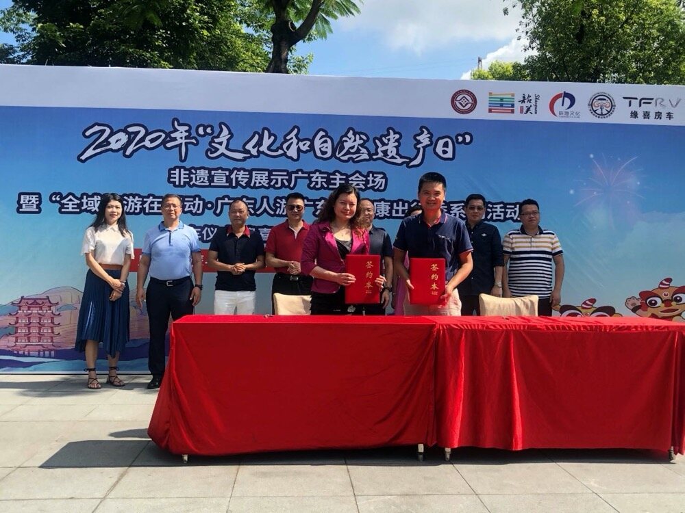 发车仪式现场,广东省中国旅行社股份有限公司与缘喜房车文化有限公司签订了战略合作协议。未来,双方将以合作促发展,通过资源互补、联合营销等方式共同推广景区精品自驾旅行线路,打造自驾旅游及景区旅游经典品牌,助力旅游业全面复工达产,推进全域旅游发展。