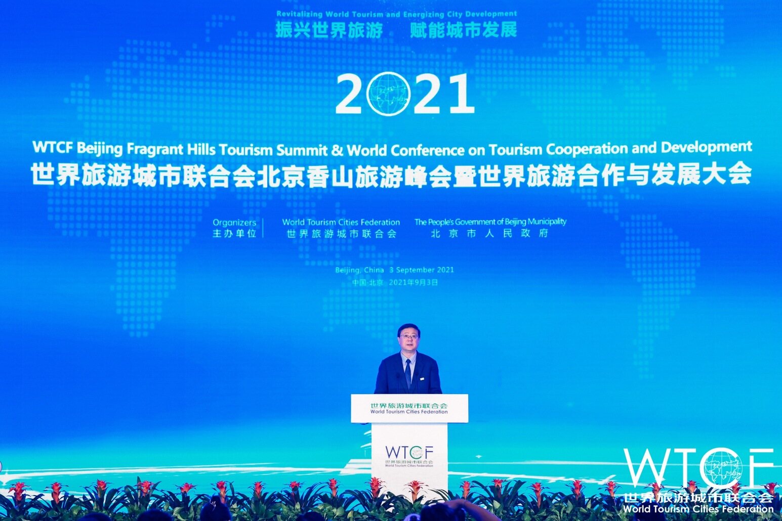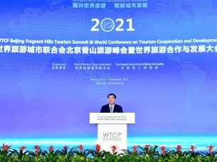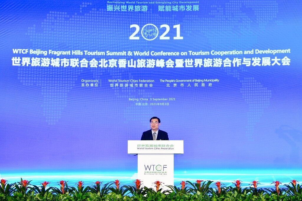 9月3日,2021世界旅游城市联合会北京香山旅游峰会暨世界旅游合作与发展大会在北京国家会议中心举办。中国文化和旅游部部长胡和平,世界旅游城市联合会理事会主席、北京市市长陈吉宁出席大会并致辞,联合国世界旅游组织秘书长祖拉布·波洛利卡什维利、上海合作组织秘书长弗拉基米尔·诺罗夫等视频致辞。