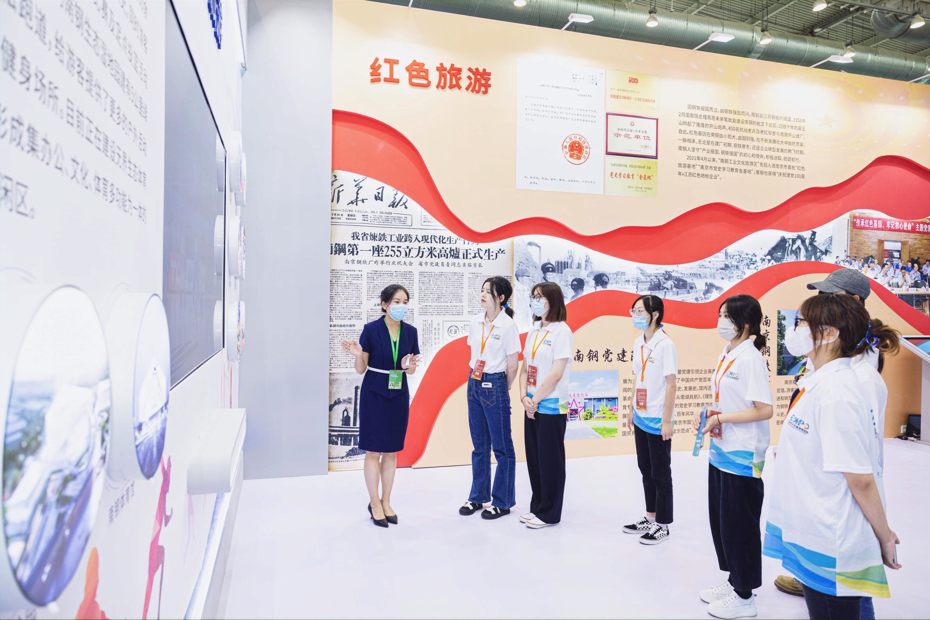 在运河数字文旅产业展,南钢工业文化旅游区展厅通过远程沉浸式旅游和3D数字工厂实时展示,展现了智慧旅游、运动旅游、红色旅游等六大业态,不仅普及了钢铁冶炼工艺知识,提升游客对钢铁工业的认知,还全面展示了南钢丰富的旅游资源,9月23日,展厅便吸引了上千名观众前来参观。近两年,南钢工业文化旅游区从传统重工业向绿色化、现代化、科技化转型,搭建新型综合旅游发展平台,实现工业旅游及相关产业相融合,今年暑假,旅游区共接待中小学生8900余人次。
