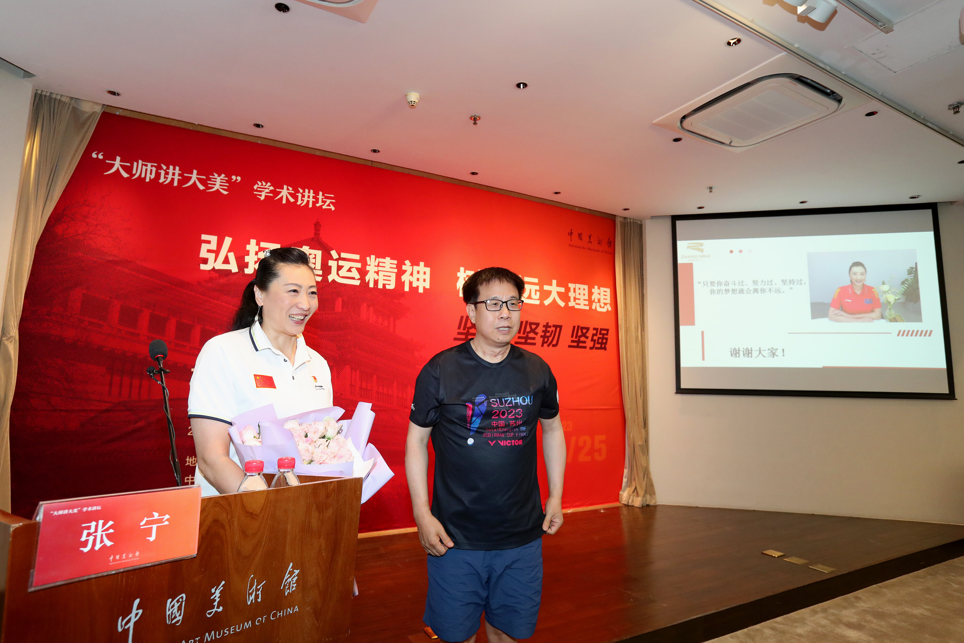 6月25日,羽毛球世界冠军、奥运冠军,前国家队女单主教练张宁应邀来到中国美术馆“大师讲大美”学术讲坛,围绕“弘扬奥运精神 树立远大理想”,以自己的亲身经历为广大观众讲述世界冠军、奥运冠军成长的故事,聚焦体育与艺术的关系,以多元视角探寻各学科的内在联系。