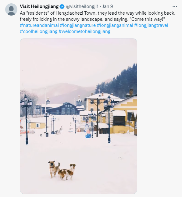 本月优秀X平台贴文是黑龙江省文化和旅游厅1月9日发布的贴文,雪地里小动物的图片与生动有趣的文案完美配合,勾画出一幅自然和谐的美丽雪景画面,收到2.6万次点赞、26条点评、91次转发。