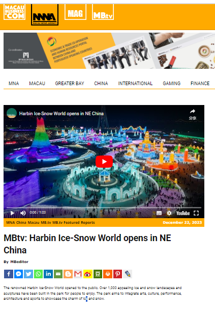 本月优秀文旅国际新闻案例是在这个寒冷的冬天,黑龙江哈尔滨的冰雪大世界火遍了全球,各大媒体也争相报道。据统计,全球各大媒体相关报道不少于100篇。