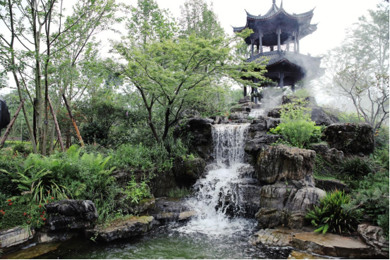 逛世园会从成都园开始。位于主会场的成都园整体地势周边高、中心低,如微缩版四川盆地,以自然山水作为构图主景,以“一亭一居一廊”为脉络,东面高山叠瀑,中部水绕民居,西面花田野趣,移步易景、相互呼应、清秀疏朗,形成了别具一格的西蜀园林景致。