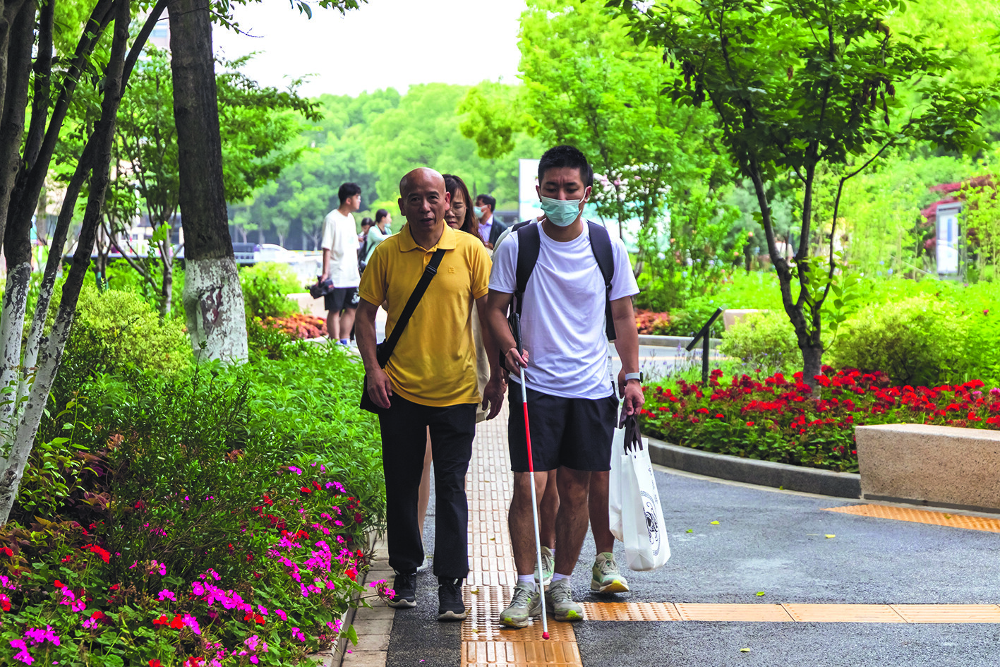 作为主客共享之地,玄武湖景区的社会效益同样值得关注。2023年,玄武湖景区无障碍花园开门迎客,不少特殊人群闻讯赶来,他们走上盲道,在自动感应的语音讲解装置的加持下,感受玄武湖的自然与文化。该花园以“远山近水、鸟语花香”为主题,根据残障人士、老年人等特殊人群的游园需要,规范设置各种无障碍设施,如全程盲道、扶手护栏、盲文标识,配建了鸟类科普廊、智能语音提示、植物触摸讲解等服务设施。
