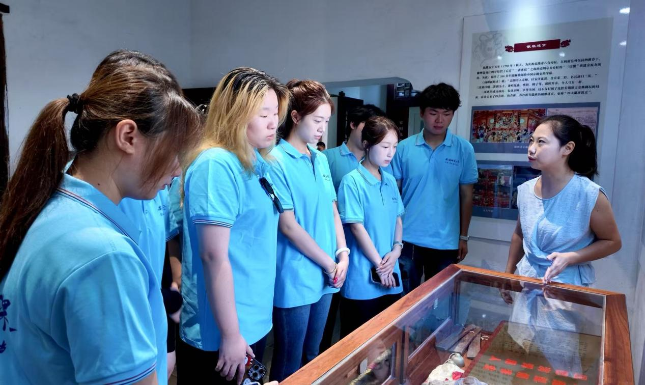 在潜山文化馆弹腔专题展区,实物陈列、影像播放、图文并茂的展示矩阵,全方位再现了弹腔的表演技艺、精美戏服、经典剧目等文化元素。在与潜山文化馆馆长的深入交流中,队员们全面了解到当地在弹腔非遗保护、传承与推广方面的创新举措与实践困境,收集到大量一手调研资料,为后续研究工作夯实了史料根基。
