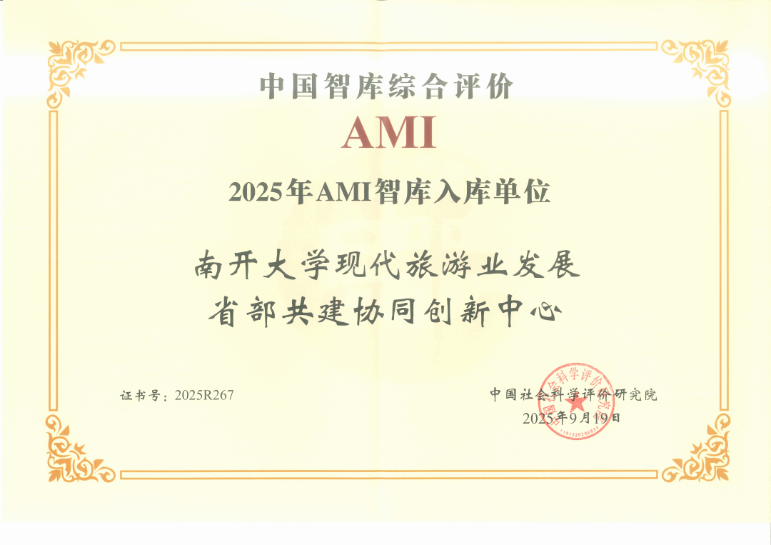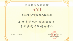近日,由中国社会科学院中国社会科学评价研究院主办的第八届中国智库建设与评价高峰论坛在京举办,会议正式公布了中国智库综合评价(AMI)智库入库单位名单。南开大学现代旅游业发展省部共建协同创新中心入选“中国智库综合评价2025年AMI智库”。