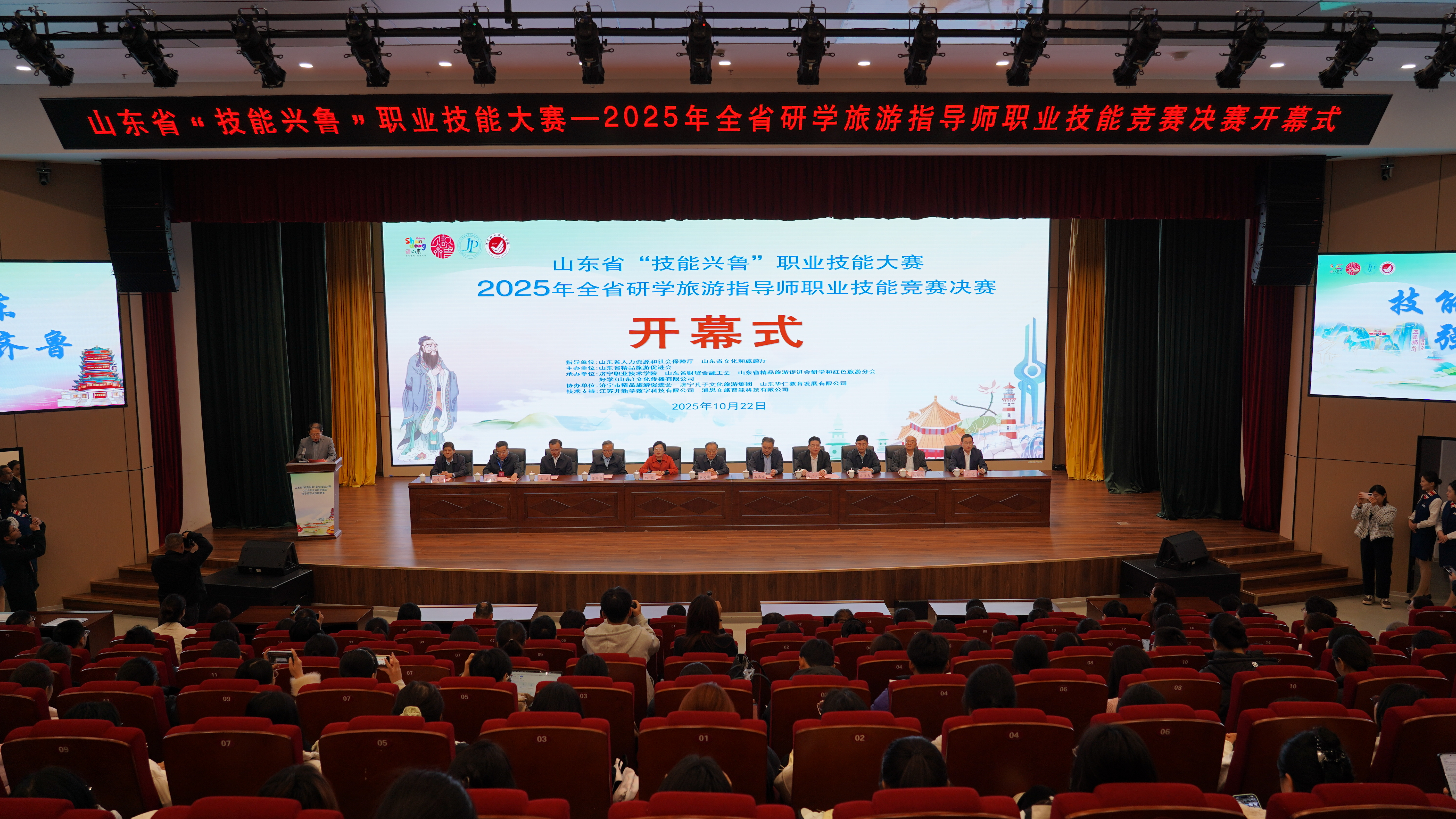 10月22日,由山东省人力资源和社会保障厅、山东省文化和旅游厅指导,山东省精品旅游促进会主办的山东省“技能兴鲁”职业技能大赛——2025年全省研学旅游指导师职业技能竞赛决赛在济宁职业技术学院开赛。