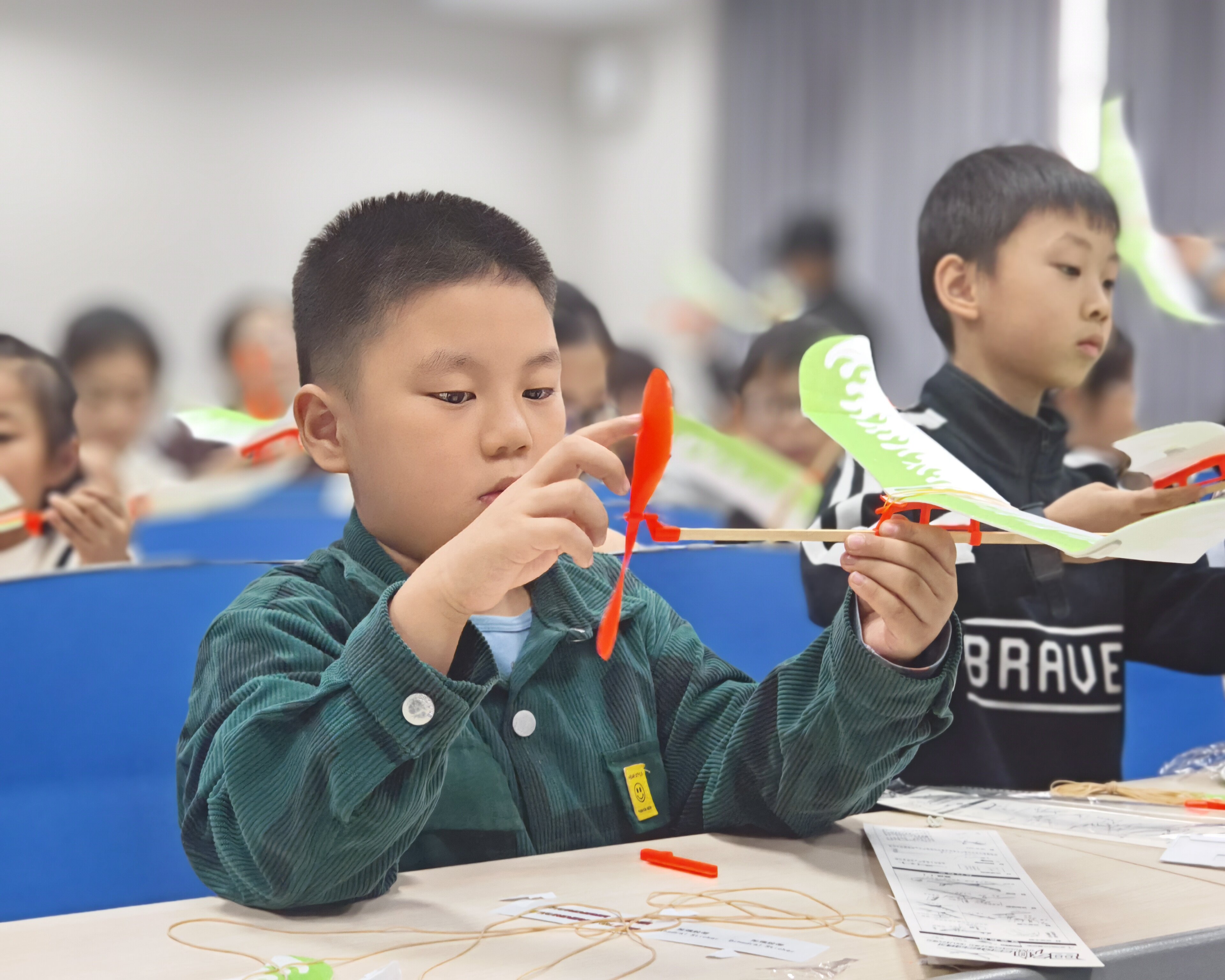 此次科普之旅还将聆听升级为互动、观摩深化为体验。在航模制作环节,家长与孩子在南航学子的指导下分工协作,那专注的神情不亚于专业工程师。11岁的李逸坤在母亲的协助下调整零件位置,经过反复调试,他的“小雄鹰”终于完成组装。当看到亲手制作的航模成功飞行,他激动地跳起来:“原来我也能造出会飞的飞机!”