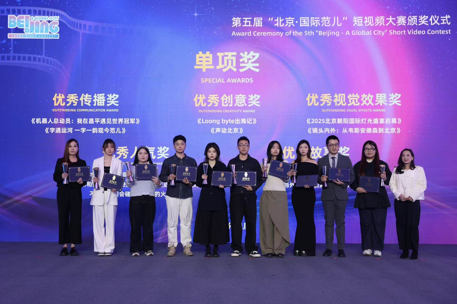 日前,第五届“北京·国际范儿”短视频大赛颁奖仪式在中国电影博物馆举办,《China Travel in北京》等47部作品分获一二三等奖、优秀奖和单项奖。北京第二外国语学院党委宣传部等单位获得优秀组织奖,北京电影学院贾婷等获得优秀指导奖。