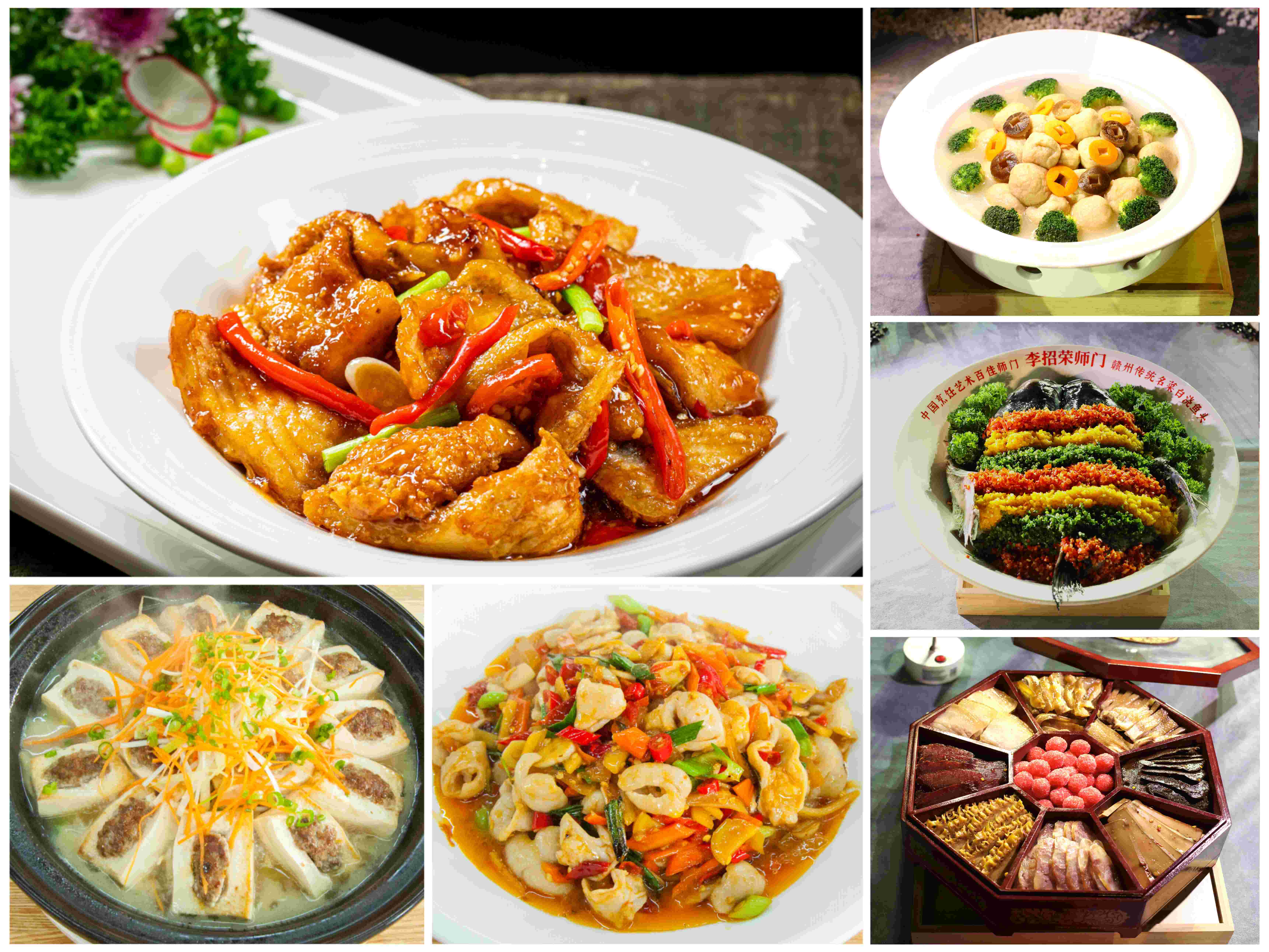 章贡客家菜、赣南嗦粉制作技艺、信丰萝卜饺制作技艺、龙南传统小吃制作技艺、龙南杨村米酒酿造技艺、绿茶制作技艺(赣南客家擂茶制作技艺)、瑶族长桌宴习俗