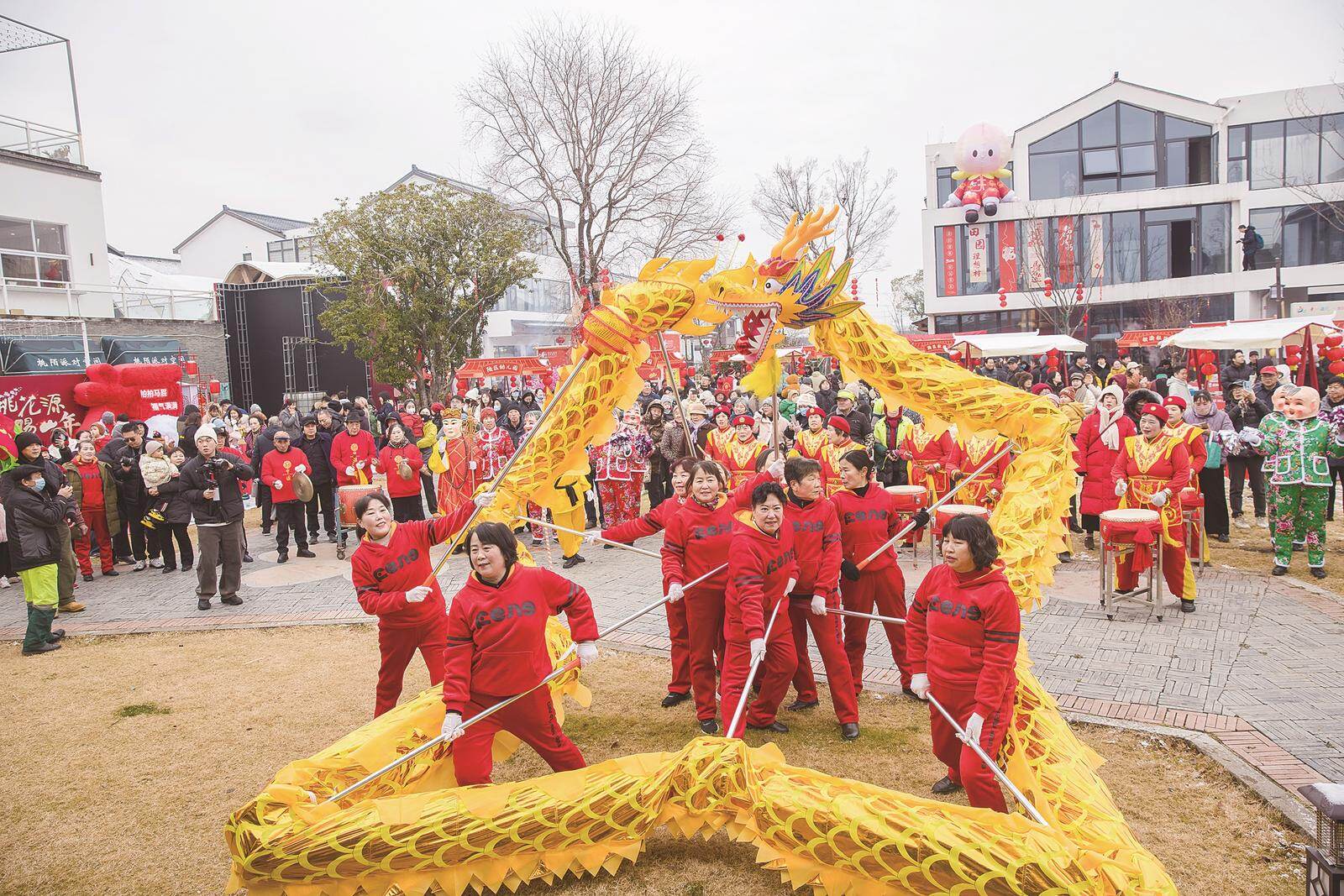 泰州市泰兴市黄桥镇祁巷村也格外热闹。作为全国乡村旅游重点村,祁巷村已举办多次春节文旅活动。今年,乡村推出“万人过大年”活动,以“龙马精神、昂扬奋进”为主题,汇聚民俗大联欢、水上花船等活动。