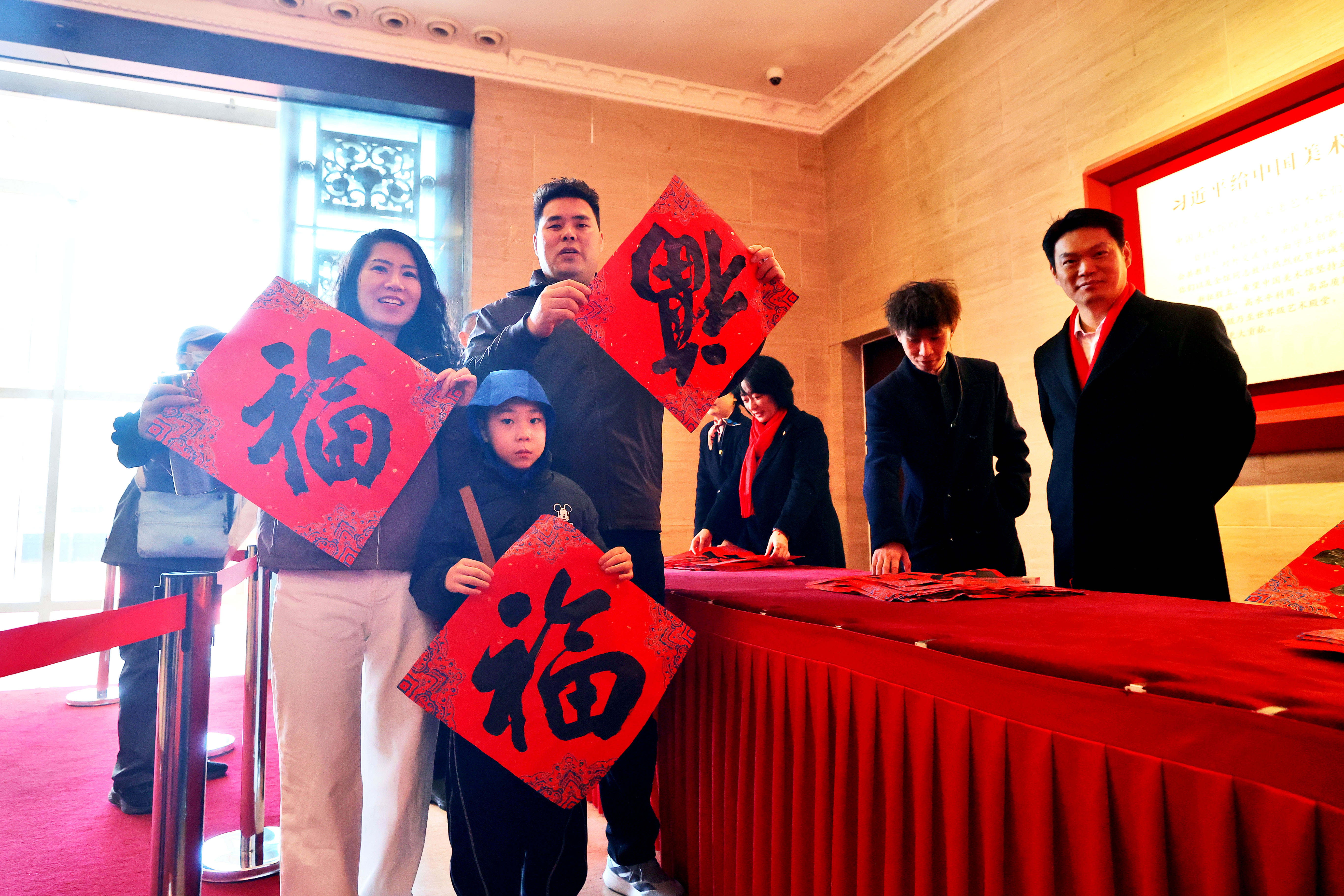2月17日,农历大年初一,中国美术馆举办“送福贺新春”春节主题文化活动。活动当日,中国美术馆工作人员为入馆参观的观众,送上由多位书法家亲自书写的“福”字,共贺新春佳节。