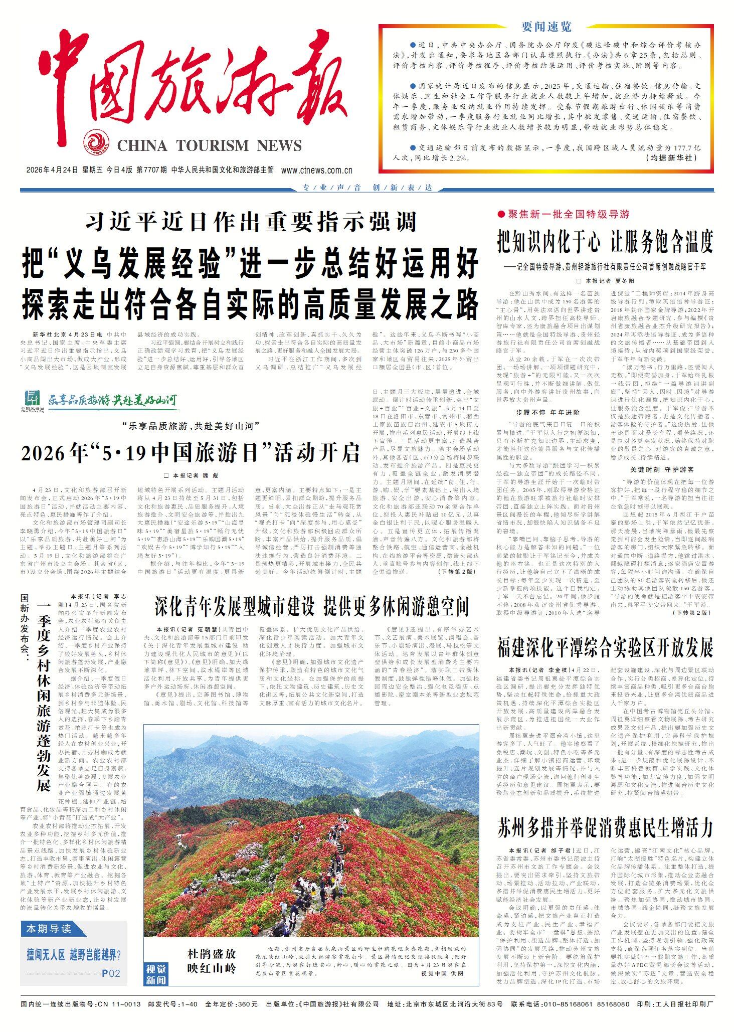 “向深而行、向新而生,于潮涌处识变、于寂静处反躬。”这是于军对自己从业20多年来的总结。他说,获评全国特级导游是荣誉更是责任。对于未来,他有清晰的规划。业务层面,将继续深挖文化内涵,探索城市漫步、康旅融合、定制游、研学等新业态,推进AI与自媒体赋能文旅融合提质升级;人才培养层面,进一步完善教学体系,把从业经验转化为可复制、可推广的成长路径,全力参与导游人才梯队建设,为贵州培育更多优秀文旅人才。“导游不仅是风景的导览者,更应该是文化的诠释者。希望今后能为同行和院校师生带去创新理念,鼓励更多人夯实理论基础、深挖人文底蕴,把贵州故事讲得更生动、更出彩。”