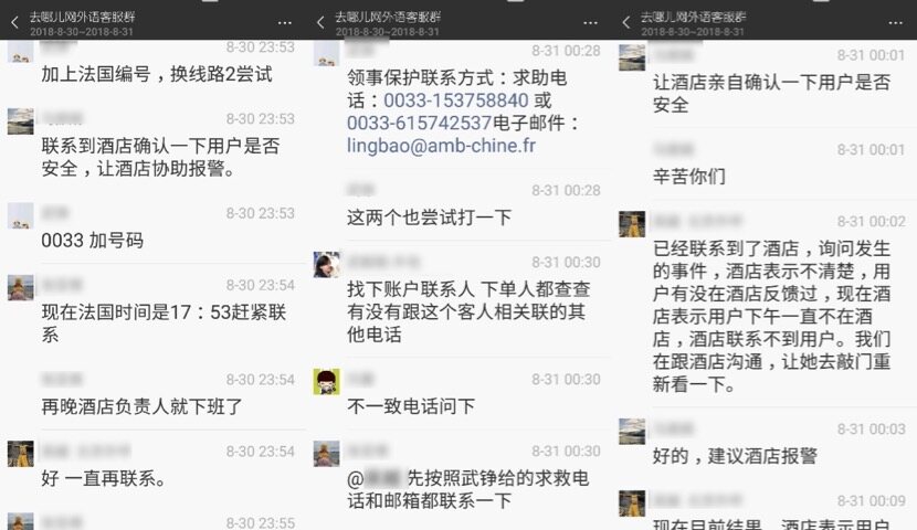 “将求助范围扩大。我们8个人,肯定比女孩父亲1个人能做更多事!”。去哪儿网客服联系了中国驻法大使馆。由于当地已非工作时间,电话被转接到中方。对方表示要等法方上班才能回复。